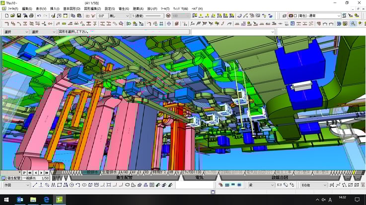 躯体工事の時は、配管・ダクトルートをイメージし、設置機械のスペースを確保するための検討・仕込みを行う時期となり、内部の仕上げ工事と共に、大勢の建築他職と調整を行い協力しながら見えなくなる部分での配管・ダクト・機械類を設置し、仕上げ面に機器類を取付けしていき、最終の仕上げとして試運転調整を行いお客様へ引渡しとなります。